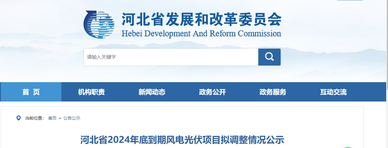 2月20日,河北省发改委发布《2024年底到期风电光伏项目拟调整情况公示》。