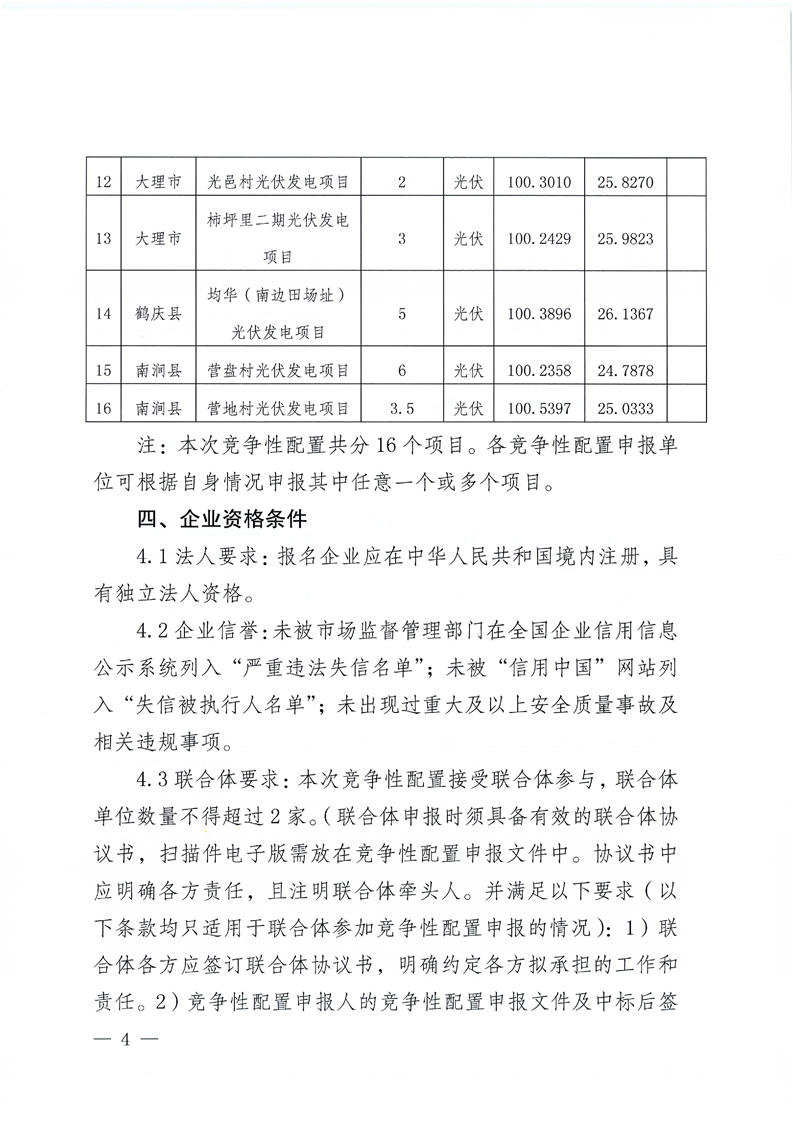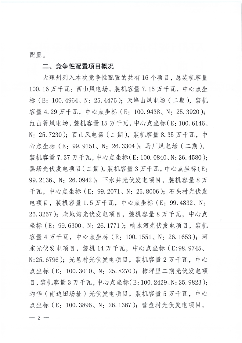 大理州发展和改革委员会 大理州能源局关于大理州2024年度剩余批次新能源项目竞争性配置公告