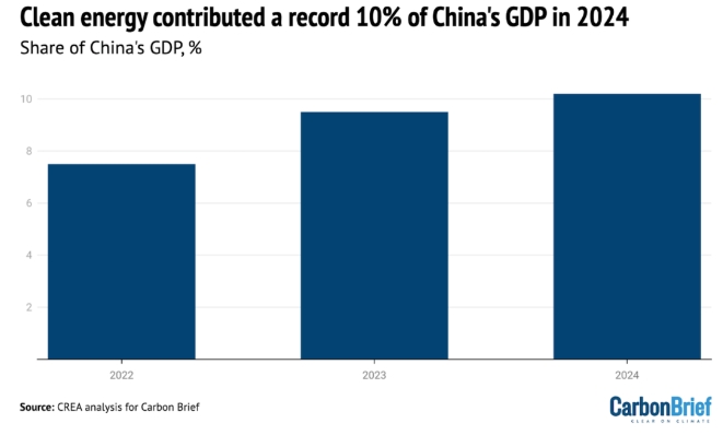 CREA进一步表示,清洁能源对中国经济增长的巨大贡献正使其成为中国经济和工业发展的关键组成部分。该行业的增长速度是中国整体经济的三倍,占2024年全部GDP增长的26%。