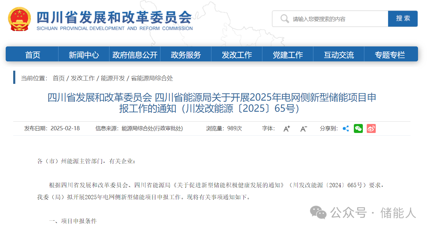 近日,四川省发展和改革委员会、四川省能源局在发布的2025年电网侧新型储能项目申报工作通知中明确,以配建形式存在的新型储能项目,在通过技术改造满足同等技术条件和安全标准时,可以申请转为独立新型储能项目,并经过评估论证后纳入项目清单进行调整。但风光水火储多能互补一体化项目的储能,原则上暂不转为独立新型储能。