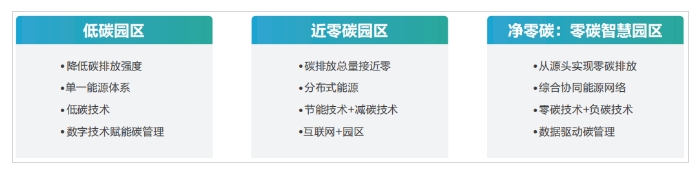 综合梳理相关园区概念,零碳智慧园区是在“双碳”背景下,历经低碳、近零碳的动态演进以及规划、建设、运营一体化持续优化迭代,最终实现净零碳排放的一种园区发展模式。