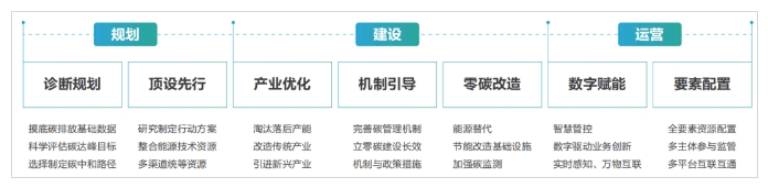 通过监测与核算园区内的碳排放活动,获取园区各途径碳排放的事实与数据,制定针对性策略,最终推动园区零碳智慧转型。