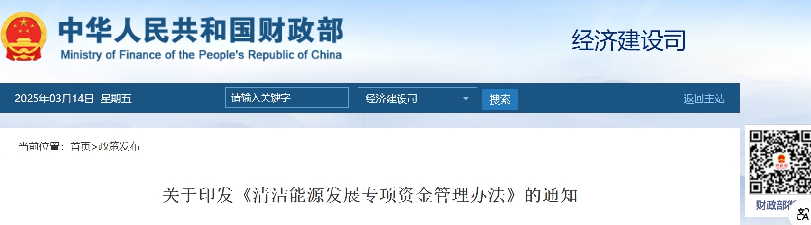 日前,财政部印发《清洁能源发展专项资金管理办法》。