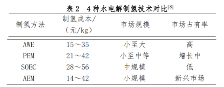 从技术商业化角度,对4种电解水制氢技术进行对比,如表2所示。