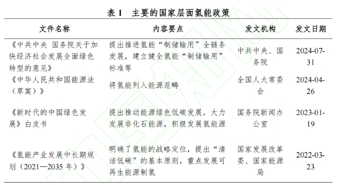 据不完全统计,截至2024年7月,我国发布了590多项与氢能相关的政策,包括国家政策100多项,地方政策490多项。国家层面发布的主要涉氢政策及氢 能专项政策如表1所示。