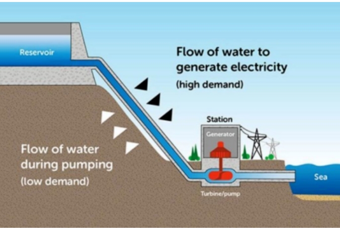 抽水蓄能利用两个不同高度的水库,通过水从高处流向低处发电。电力通过涡轮机产生,与水力发电设施的方式相同。水被回收到低处水库,再被泵回高处重复使用。目前,美国约有50个抽水蓄能设施,总容量达22吉瓦。美国能源部正在资助新项目,例如与EDF公司在肯塔基州合作的一个项目。近年来,澳大利亚和葡萄牙等国家也在增加抽水蓄能设施。