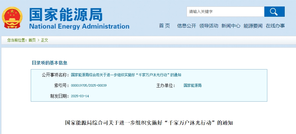 国家能源局综合司下发《关于进一步组织实施好“千家万户沐光行动”的通知》,文件提出: