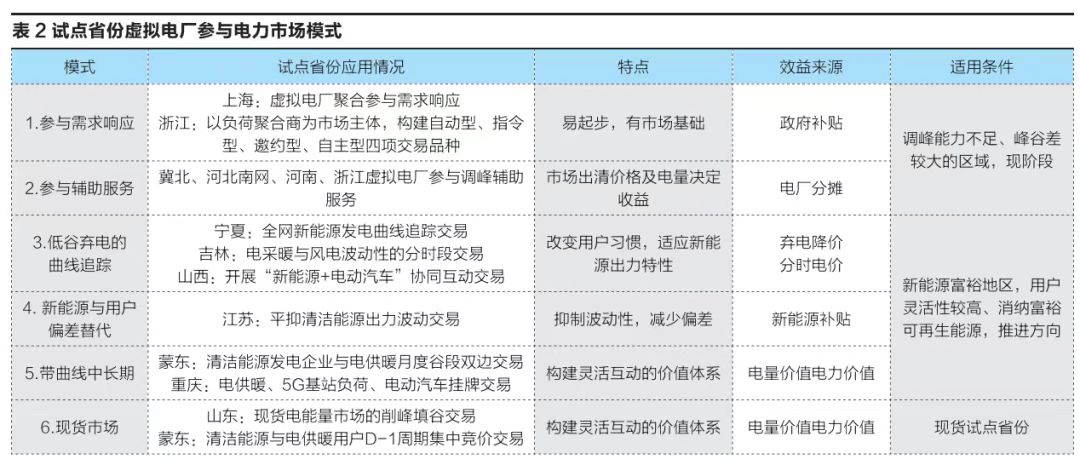 随着全国统一电力市场体系的不断完善,虚拟电厂可参与电力市场的模式包括:需求响应、辅助服务、曲线追踪、偏差替代、带曲线中长期和现货市场等。