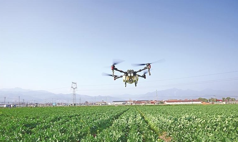 日前,陕西瑞飞创新科技有限公司工作人员操作无人机进行植保作业。