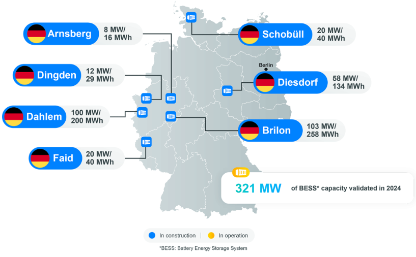3月26日,在TotalEnergies董事长兼首席执行官Patrick Pouyanné参加柏林欧洲2025会议之际,该公司宣布了六个电池存储项目的投资决定。这些项目旨在配合道达尔能源在德国电力领域的综合发展,总计新增存储容量221兆瓦,投资额为1.6亿欧元。