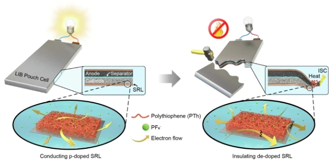 虽然现有的电池系统一般会配备外部安全装置(如压力阀、隔热材料等),但依旧存在响应延迟或失效的问题,亟需一种内部自主安全机制。