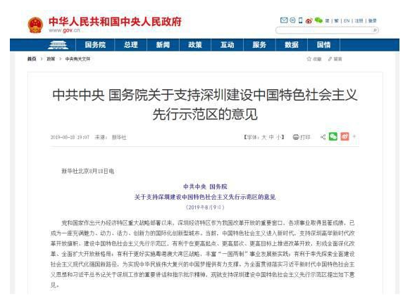 最近一段时间,深圳再次火爆了全国人民的朋友圈。关键时刻,加码深圳。国务院近日下发了《关于支持深圳建设中国特色社会主义先行示范区的意见》(下称意见)。