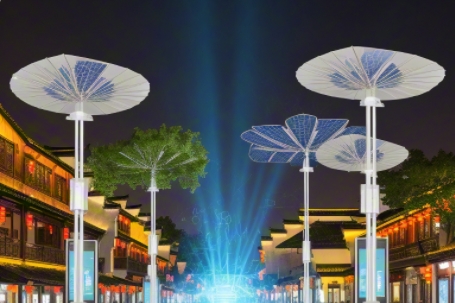 记者了解到,太阳能户外智享伞以设置于伞顶的弱光发电为基础功能,伞下可零售文创用品,伞上智能交互屏幕可以播放景区介绍、历史文化故事、旅游攻略等信息,提升游客的旅游体验。夜晚,太阳能伞则可提供景区照明。既节约了景区原本电费支出,又可实现多元化的亮化设计。此外,可以将伞的外观设计成与景区契合的造型,作为景区的特色景观,吸引游客拍照打卡,增加景区的新颖性和吸引力。不仅如此,通过安装具有AI智能识别功能的摄像头,还能赋予监控消防隐患、路面垃圾、违规摆摊、违停等城市管理功能。