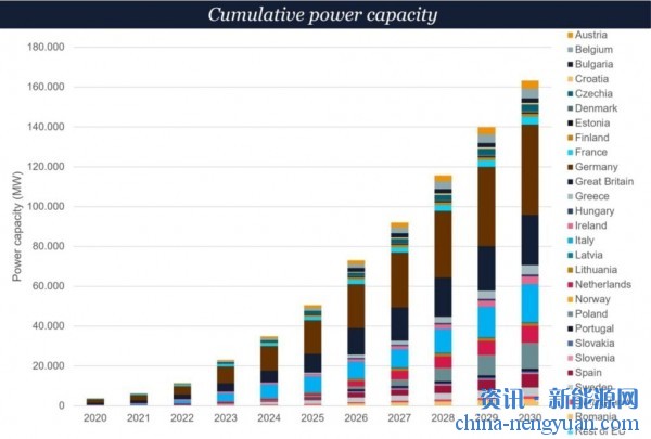 Vlachopoulous表示,LCP Delta预测,到2030年,将额外安装128GW/300GWh的电化学储能系统,这意味着到本十年末,欧洲将累计安装约163GW的电池储能系统。