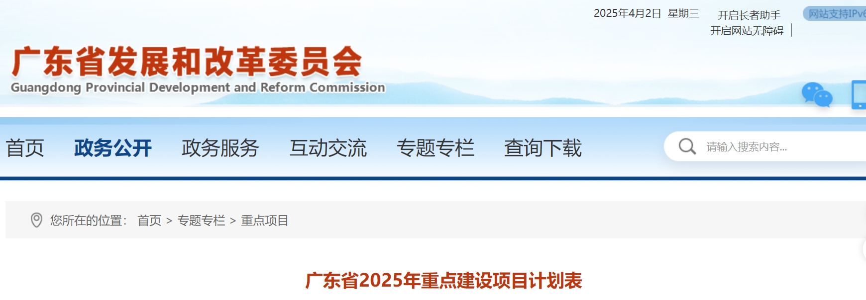 日前,广东省发展和改革委员会发布《广东省2025年重点建设项目计划表》。