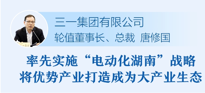 围绕我省“十五五”规划,他提出三方面建议:第一,全球化始终是不可阻挡的潮流,三一意识到“不出海,就出局”,建议我省在“十五五”规划中强化高水平对外开放,加大对企业全球化和人民币国际化协同发展的支持力度;第二,数字科技与新能源是人工智能时代的基座,建议率先实施“电动化湖南”战略,强化新能源基建布局;第三,产业需要新赛道,建议将湖南的优势产业打造成为大产业生态,例如充分发挥我省工程机械之都的优势,打造建筑工业化的产业生态。