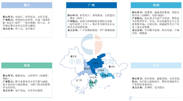 珠三角光伏产业依托深圳、东莞的电子信息产业基础,光伏设备自动化程度高,HJT、钙钛矿等新技术研发活跃,并形成“研发(广州)-制造(佛山、东莞)-应用(深圳、珠海)”协同链条。珠三角光伏产业正从“制造中心”向“技术+应用创新中心”转型,未来需强化上游材料布局(如硅料、银浆)以提升全产业链竞争力。