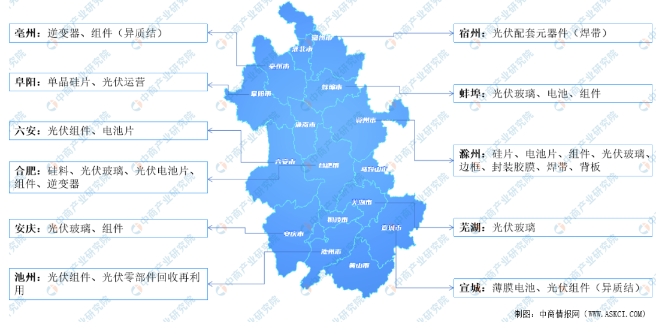 安徽形成了以合肥、滁州“双极”为引领,蚌埠、六安、马鞍山、芜湖、宣城等地特色布局、竞相发展的光伏产业新格局。