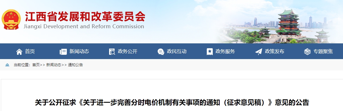 附件:江西省发展改革委关于进一步完善分时电价机制有关事项的通知(征求意见稿)