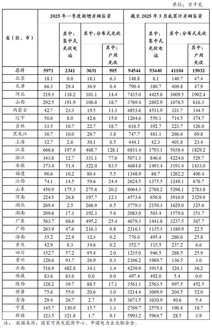 4月29日,国家能源局发布2025年一季度光伏发电建设情况。
