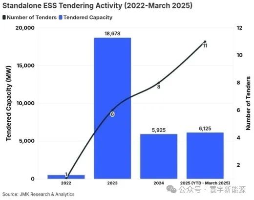 2025年一季度,印度招标 9.5 吉瓦公用事业级储能项目,独立系统占比 64%,行业迎来关键转折。