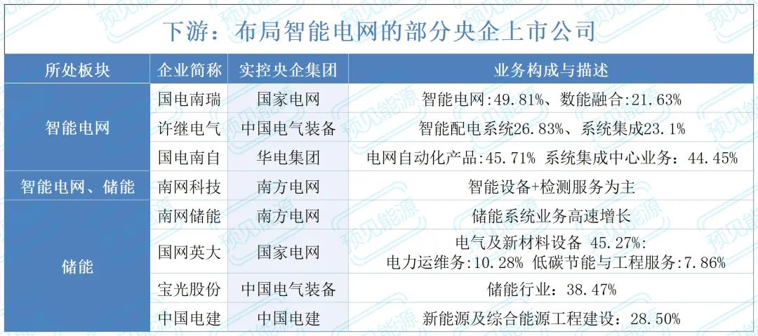 在下游环节上,这些央企旗下上市公司主要集中在智能电网与储能系统上面。未来智能化是新能源系统未来演进方向,调度自动化、终端感知、储能集成,将成为新能源下游环节的关键词。