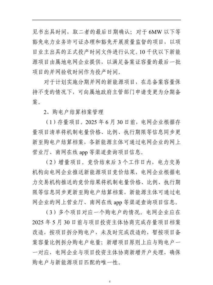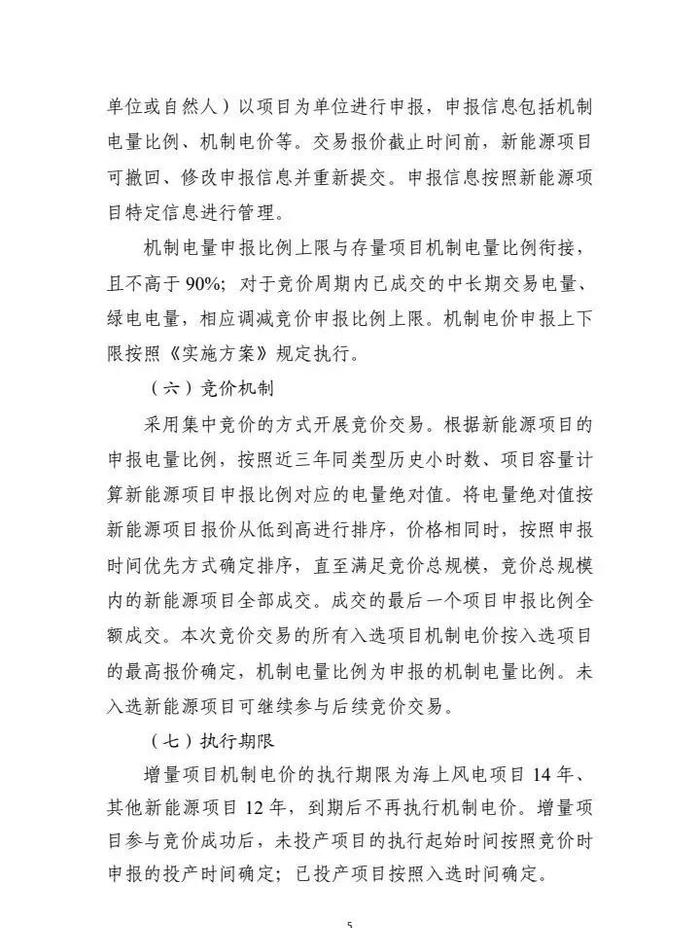 执行期限:增量项目机制电价的执行期限为海上风电项目14年、其他新能源项目12年,到期后不再执行机制电价。增量项目参与竞价成功后,未投产项目的执行起始时间按照竞价时申报的投产时间确定;已投产项目按照入选时间确定。