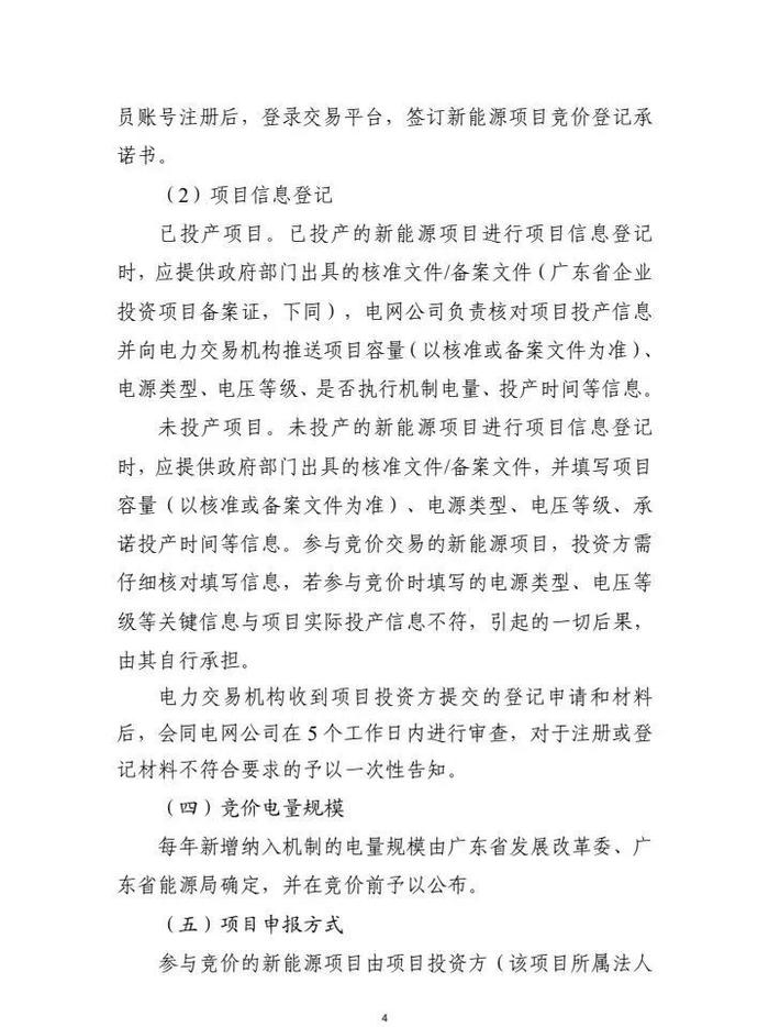 竞价电量规模由广东省发改委、能源局确定,并在竞价前公布,申报信息包括机制电量比例、机制电价等。机制电量比例申报上限与存量项目机制电量比例衔接,不高于90%。