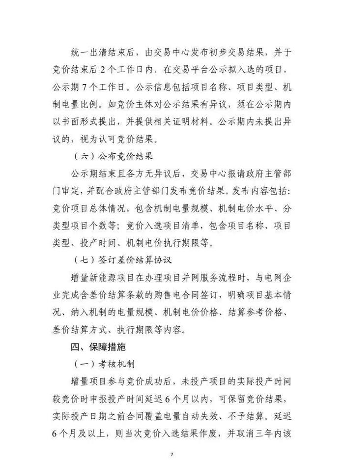 需要强调的是,增量项目参与竞价成功后,未投产项目的实际投产时间较竞价时申报投产时间延迟6个月以内,可保留竞价结果,实际投产日期之前合同覆盖电量自动失效、不予结算。延迟6个月及以上,则当次竞价入选结果作废,并取消三年内该项目的竞价资格。