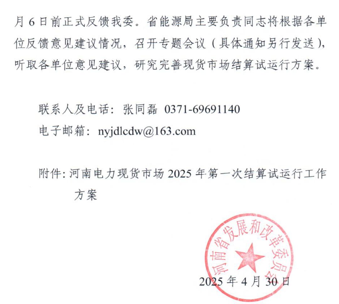 近日,河南省发改委发表了《关于征求电力现货市场结算试运行工作方案意见的通知》,针对《河南电力现货市场2025年第一次结算试运行工作方案》征求意见(以下简称《工作方案》)。河南将于5月份适时开展现货市场结算试运行。