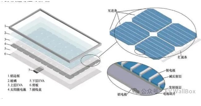 电池片(Solar Cell):核心发电层,主流为单晶硅(Monocrystalline)或多晶硅(Polycrystalline);