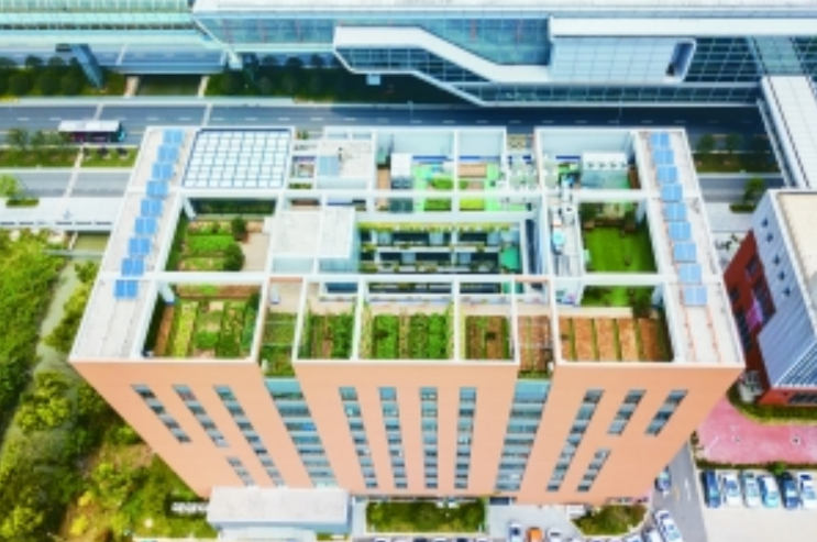 8月14日,航拍镜头下的宁波大学科技服务大楼,立体绿化和屋顶农场令人眼前一亮,该大楼还运用了雨水回用、地源热泵空调、光伏发电等绿色技术。
