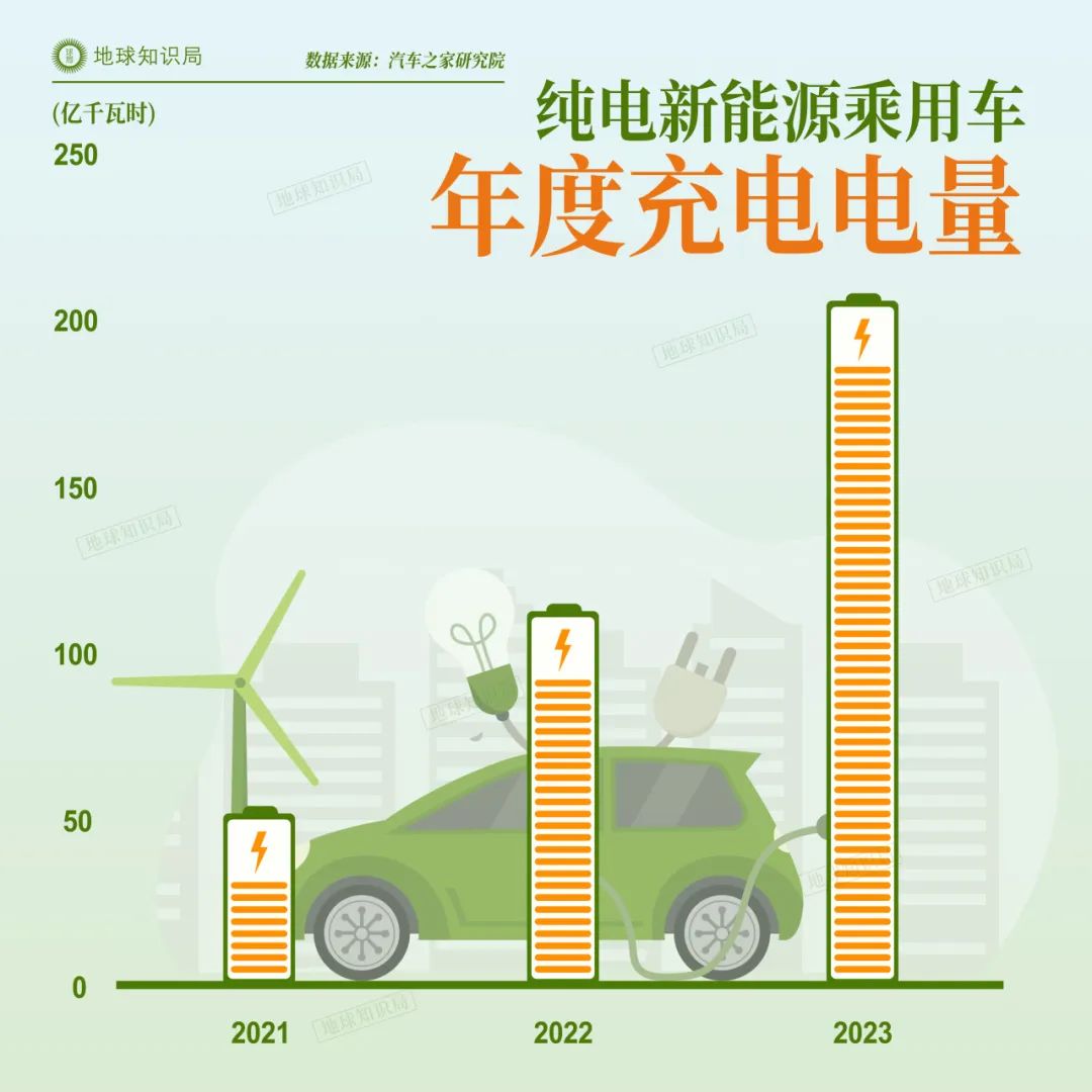 为此,中国大力发展新能源产业,比如用新能源汽车替代油车,新能源乘用车充电量以每年翻一倍的速度增长。