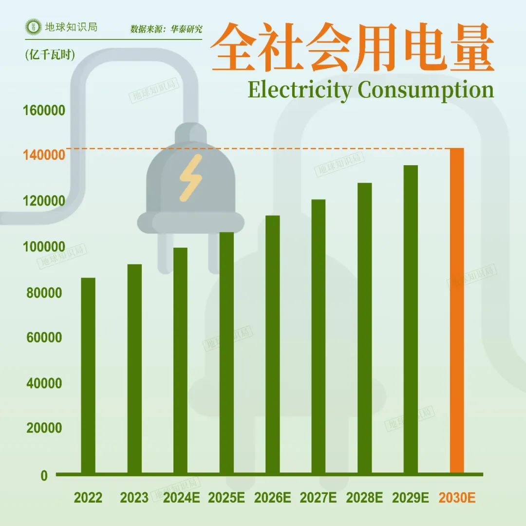 有关机构预测,到2030年,全社会用电量将超过14万亿千瓦时,相当于七年时间内,用电量年平均增长约6.5%。