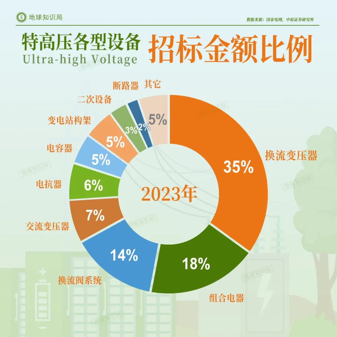 近年来,为了输送绿电项目风电,特高压电网建设如火如荼,2023年开工特高压项目就有五条,而且投资多在百亿元级别。