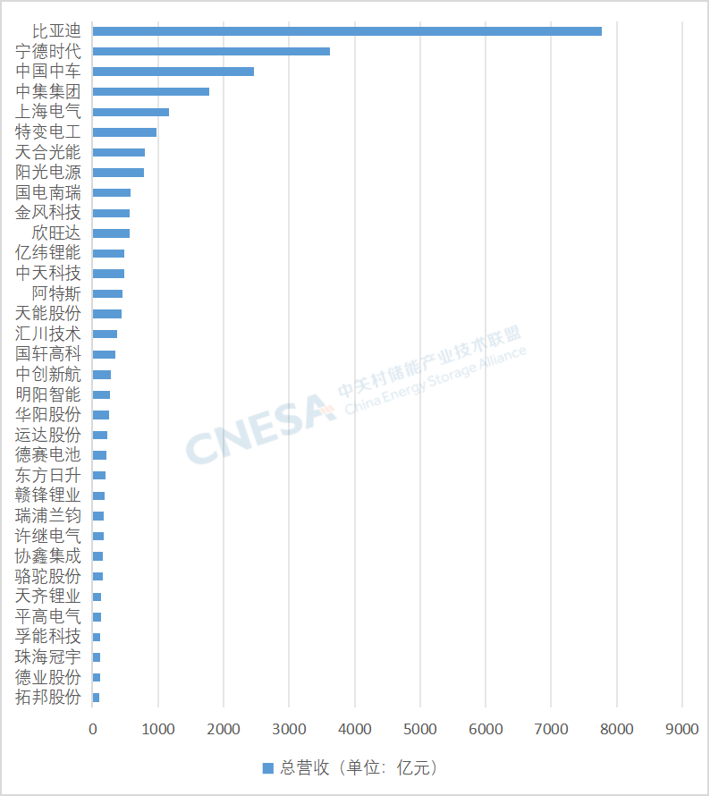 总营收前五:比亚迪、宁德时代、中国中车、中集集团、上海电气