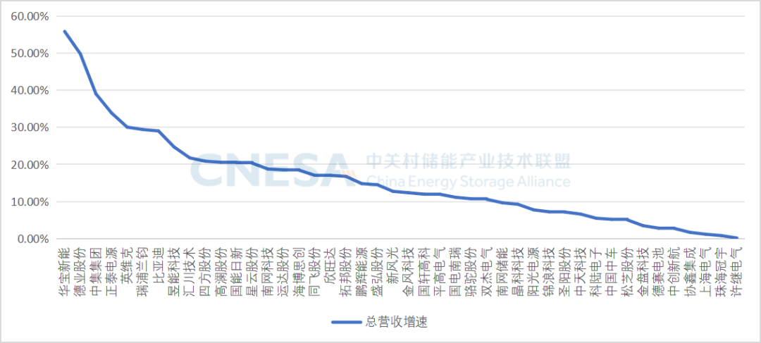 图5:2024年度储能产业链上市公司储能业务营收增速概况