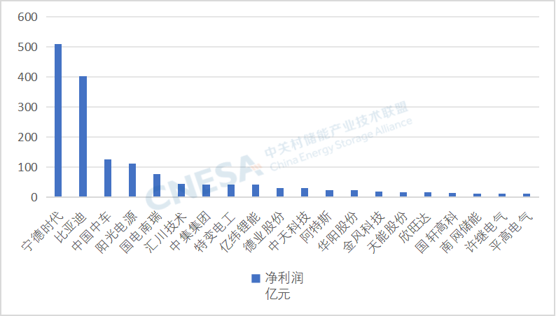 净利润前五:宁德时代、比亚迪、中国中车、阳光电源、国电南瑞