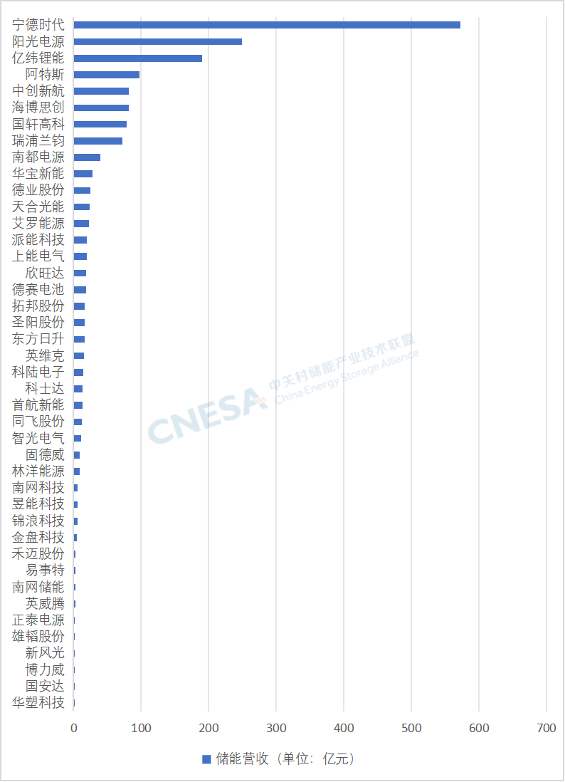 储能业务营收前五:宁德时代、阳光电源、亿纬锂能、阿特斯、中创新航