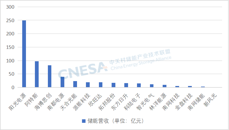 储能系统类企业营收前五:阳光电源、阿特斯、海博思创、南都电源、天合光能