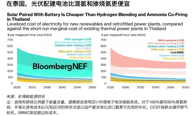 泰国的目标是到2050年实现碳中和,到2065年实现净零排放,同时确保能源安全和可负担性。根据彭博新能源财经的分析,扩大可再生能源是泰国实现这些目标的最经济路径。相比之下,对火力发电厂进行改造以混氢或掺烧氨,或配备碳捕集与封存技术,则成本更高,减排效果更差。