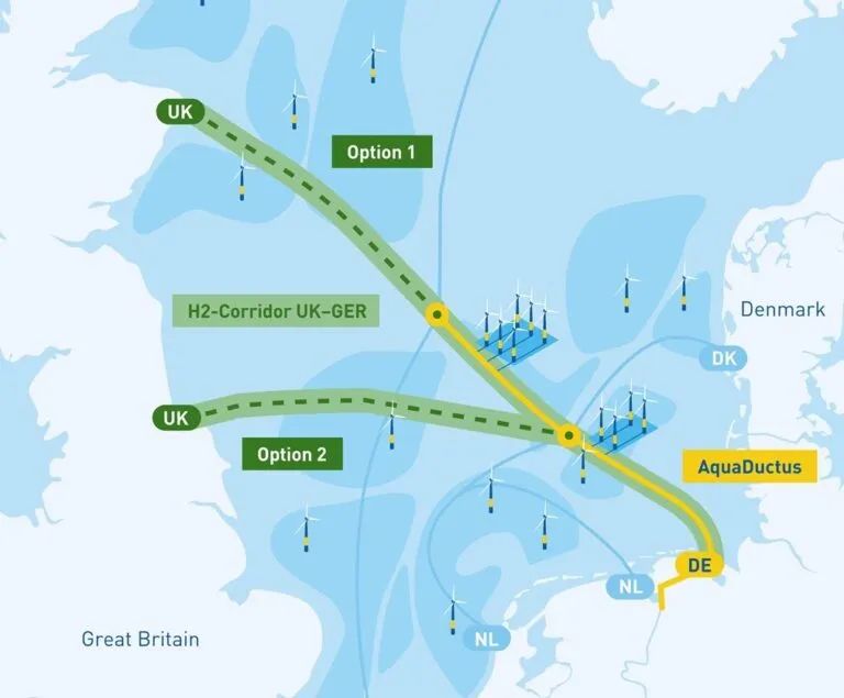 此外,该项目的目标是通过德国北海的AquaDuctus管道,将英国的氢气生产潜力与德国及欧洲大陆的氢气需求连接起来,并为欧洲新兴的氢气经济的韧性和灵活性做出贡献。