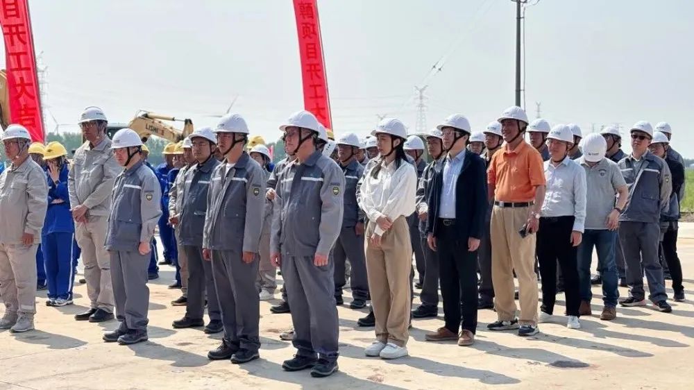 2025年5月25日上午9点18分,岚泽能源大丰港年产30万吨绿色甲醇项目总图运输标段正式拉开建设序幕,并在项目所在地江苏盐城举办总图运输标段的开工仪式。项目建设方江苏岚泽能源科技有限公司(以下简称江苏岚泽)、施工方中国化学工程第六建设有限公司(以下简称六化建)、监理方上海化学工程监理有限公司(以下简称上海化工监理)的相关领导出席仪式。