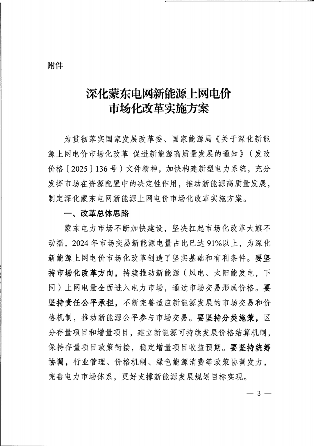 机制电价:纳入机制的电量机制电价为蒙东煤电基准价(0.3035元/千瓦时)。当市场环境发生重大变化时,结合市场价格运行实际适时调整机制电价水平。
