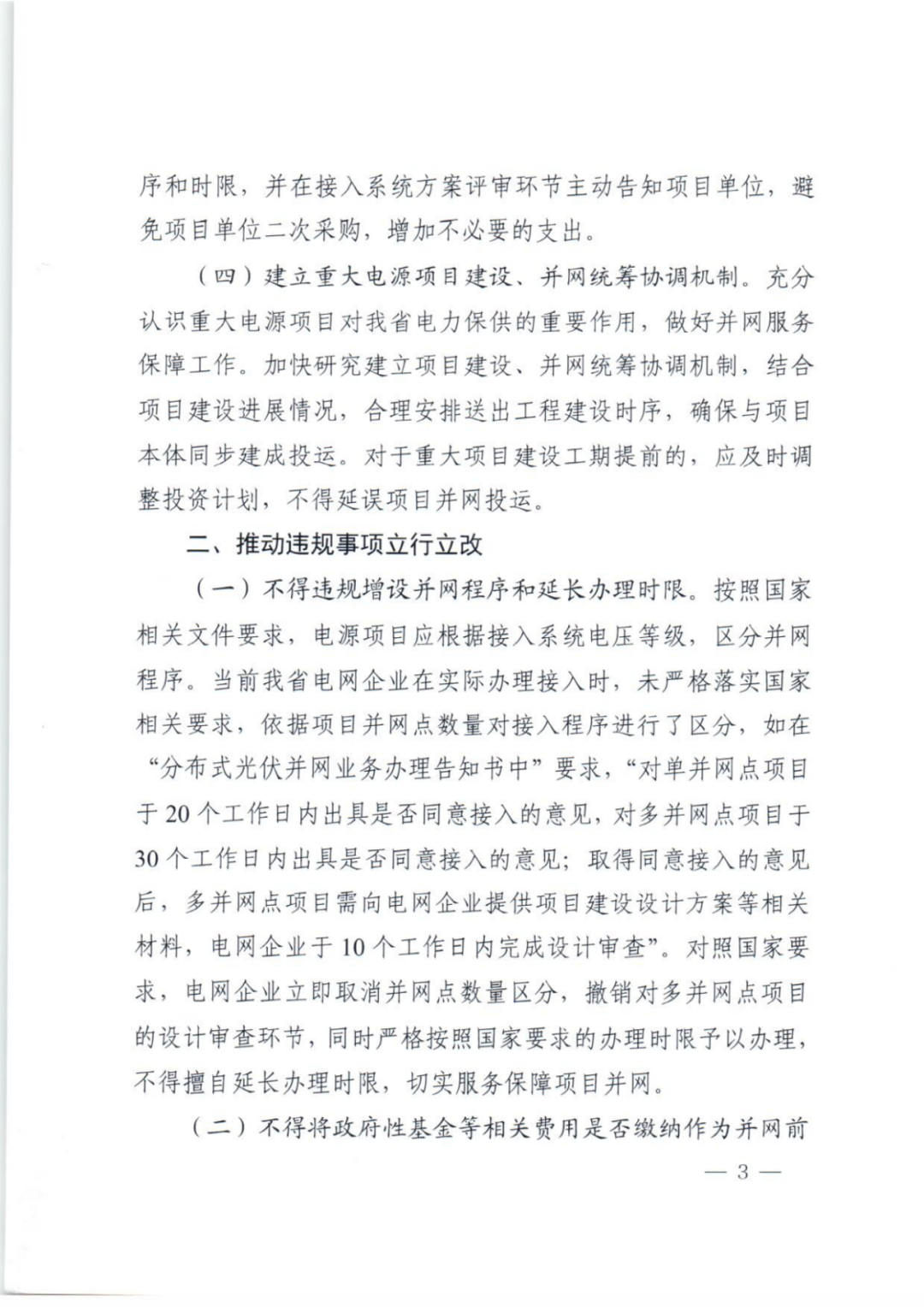 《通知》还指出,要推动违规事项立行立改。不得违规增设并网程序和延长办理时限;不得将政府性基金等相关费用是否缴纳作为并网前置条件。