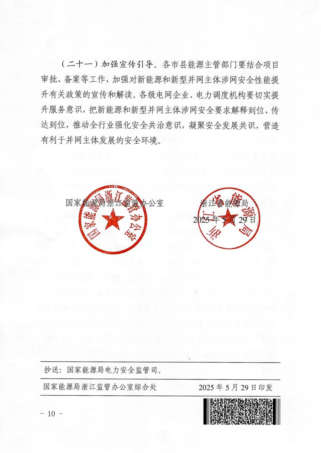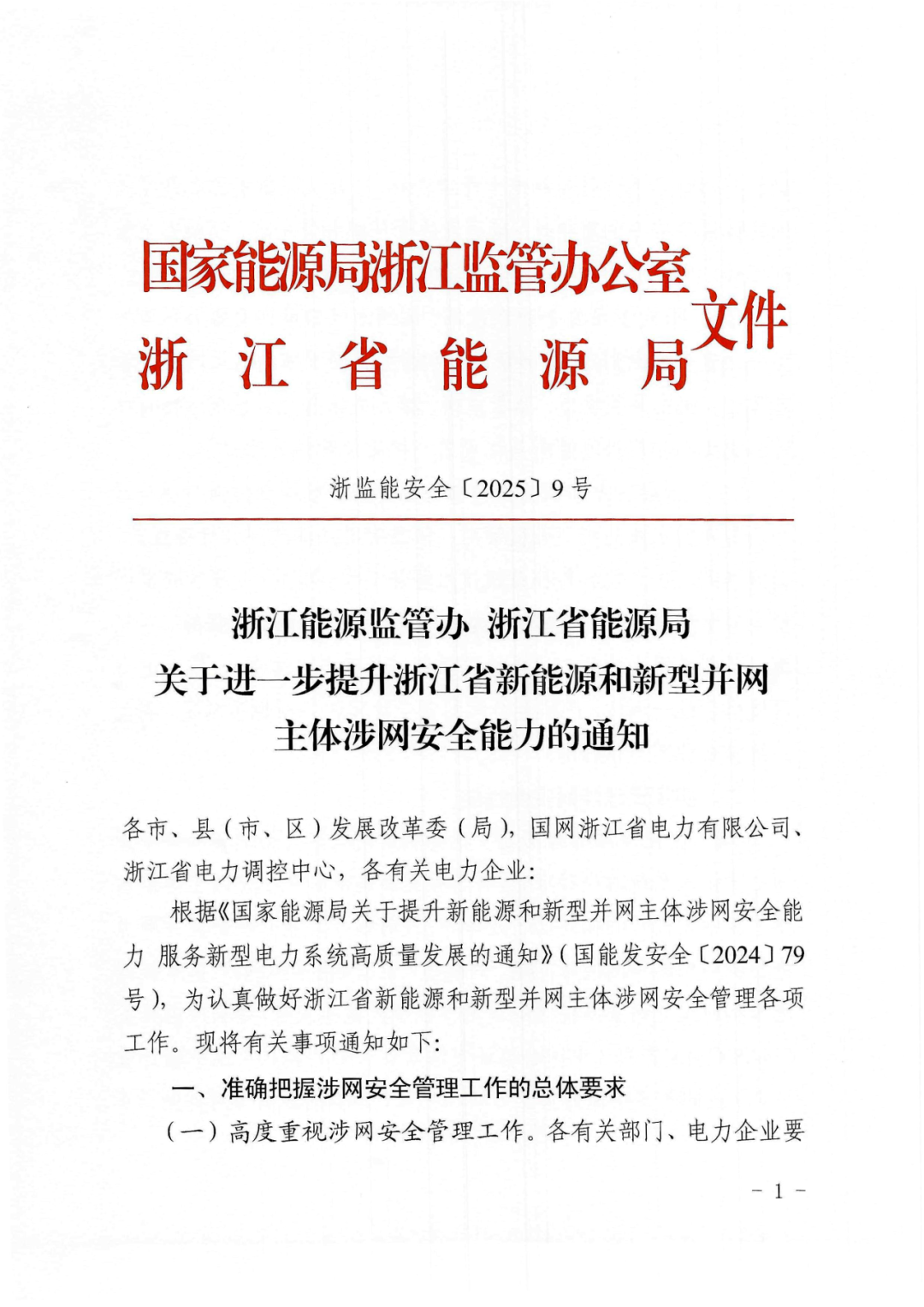近日,浙江能源监管办、浙江省能源局发布《关于进一步提升浙江省新能源和新型并网主体涉网安全能力的通知》。