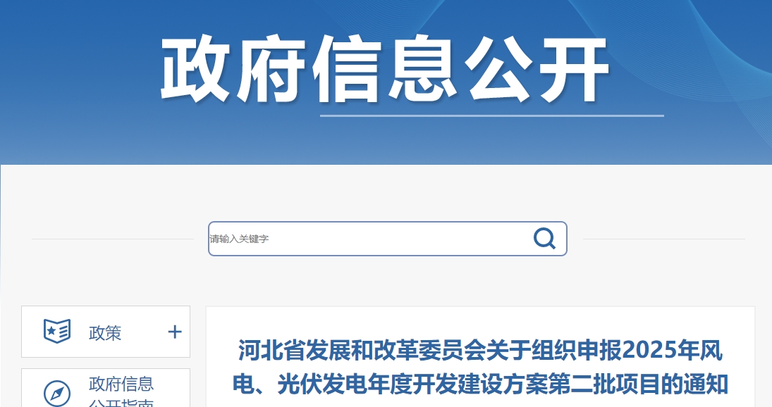 日前,河北省发改委下发《关于组织申报2025年风电、光伏发电年度开发建设方案第二批项目的通知》。