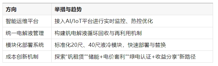 为支撑百兆瓦级全钒液流储能系统的持续降本和高效运维,企业正从以下几个方向发力: