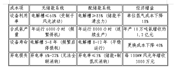 (2)为保障下游绿色化工的安全生产,项目需配置储能。储能系统是维持化工生产连续性的“安全阀”,是化工生产的刚性需求,合成氨/甲醇属于连续流程工业生产,设备启停成本极高(单次启停损失可达百万元级),且最低负荷通常需维持在50%-60%。风光发电具有强波动性(如单日发电量波动可达80%),若无储能系统缓冲,低出力时段,制氢系统降负荷可能导致合成工段供氢中断,触发非计划停机,出力骤降时段电解槽可能因功率陡降触发安全保护停机(如氢氧混合风险)。