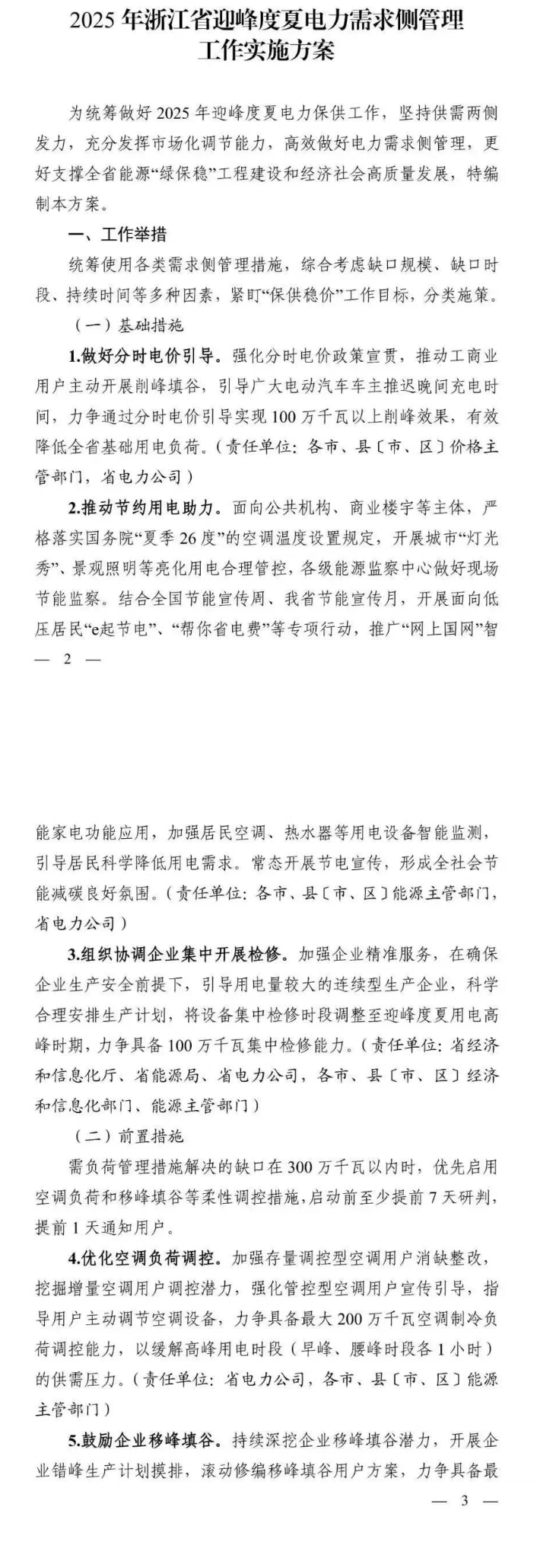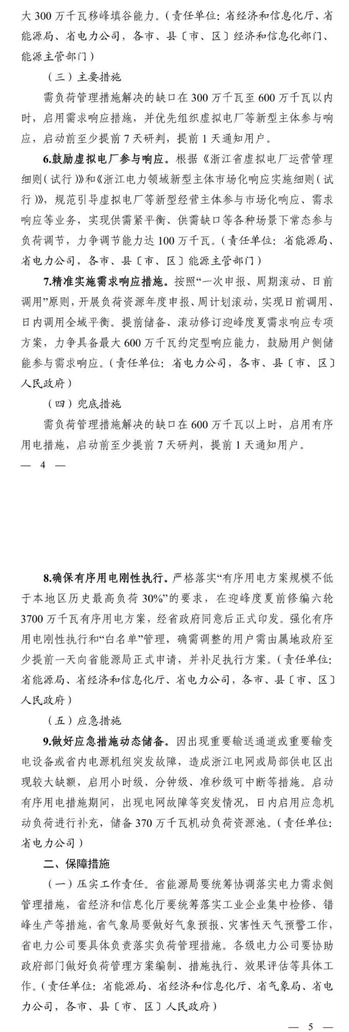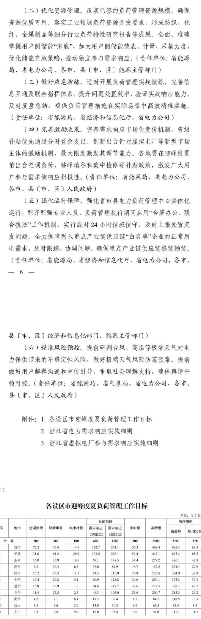 方案表示,将根据《浙江省虚拟电厂运营管理细则(试行)》和《浙江电力领域新型主体市场化响应实施细则(试行)》,规范引导虚拟电厂等新型经营主体参与市场化响应、需求响应等业务,实现供需紧平衡、供需缺口等各种场景下常态参与负荷调节,力争调节能力达100万千瓦。方案要求,精准实施需求响应措施:按照“一次申报、周期滚动、日前调用”原则,开展负荷资源年度申报、周计划滚动,实现日前调用、日内调用全域平衡。提前储备、滚动修订迎峰度夏需求响应专项方案,力争具备最大600万千瓦约定型响应能力,鼓励用户侧储能参与需求响应。